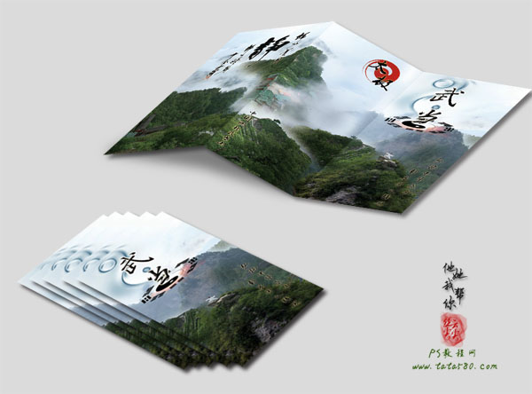 在日常宣傳推廣中,很多企業(yè)都會(huì)選用折頁(yè)的方式作為宣傳單進(jìn)行派發(fā),而三折頁(yè)的折疊方法是廣泛的折頁(yè)折法之一,一般來說,三折頁(yè)會(huì)采用16開的大度尺寸285mm*210mm(291mm*216mm 含3mm出血),我們打開三折頁(yè)不難發(fā)現(xiàn)總共有三頁(yè)六個(gè)版面,有興趣的朋友不妨自己弄一張紙來折疊一下看看實(shí)際效果。下面我們已“武當(dāng)山”的宣傳三折頁(yè)的其中三個(gè)頁(yè)面的設(shè)計(jì)效果圖
