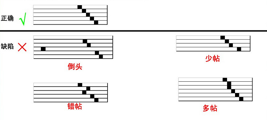 排書(配頁):配帖時不能有缺帖、多帖或后顛倒,為了幫助配帖和檢查 配帖可能發(fā)生的錯誤,在印刷時,每一印張的帖脊處,按帖序印上一個小黑方塊 稱為折標,通過配帖,書脊上就形成明顯的階梯狀的檢查標記,檢查時,只要發(fā) 現(xiàn)梯檔不成順序,就可發(fā)覺有誤而及時糾正。